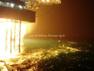 The Iranian oil and gas fields were right next to us and sometimes their Navy would cruise by and check us out. We would wave hello.