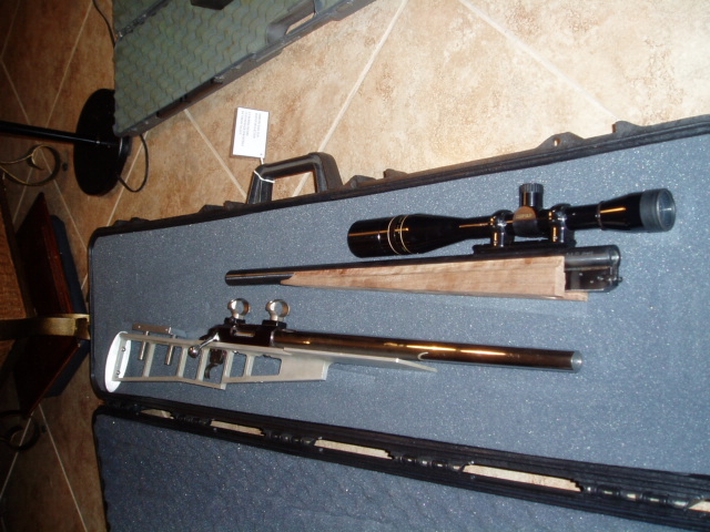 Top- Custom 1″ bull barrel 6.5 mm SS Bower Encore. 444 Marlin necked down to 6.5mm